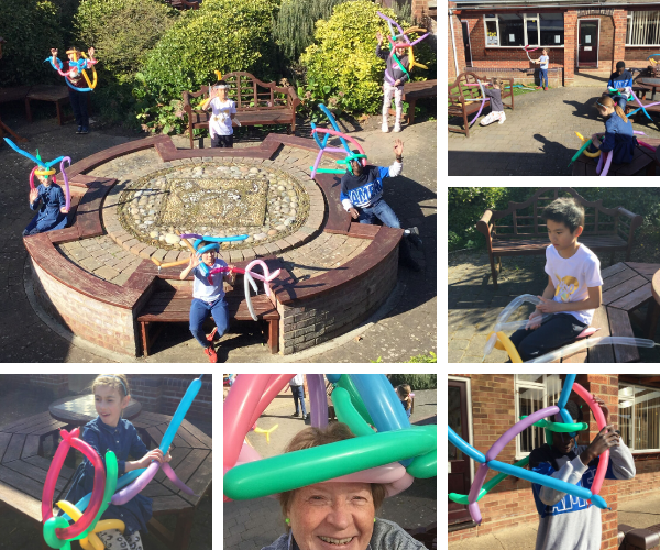 We have had some Critical Key Workers’ children on site this week and as well as following their curriculum, they have had lots of fun with various activities, including hat making, balloon modelling, Mr Lesiak’s Tennis Ball Challenge, a ‘distance picnic’ and even tried ‘distance basketball’.