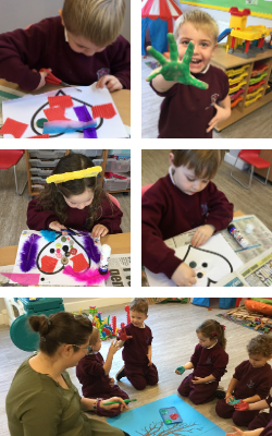 The children in our Monday Pre-Reception class are having lots of fun learning French. They are brilliant at saying hello and introducing themselves. They have loved wearing dress-up masks and playing hide and seek with cartoon characters to help reinforce their learning. They have also been learning the colours by doing mini bean bag treasure hunts! Monsieur Cochon and Monsieur Dinosaure have been very helpful too – can you spot them in the picture?