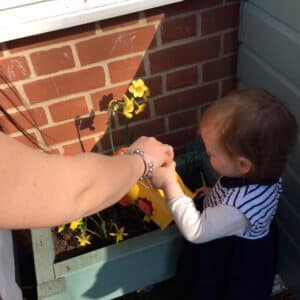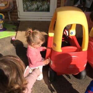 With the wonderful weather we have experienced, it has all been about playing outdoors recently. The children have loved the sand, water play, watering our daffodils and watching them grow, looking for spring minibeasts and picnic snacks. We have also enjoyed puzzles and some wonderful spring themed tuff trays. We have been encouraging lots of independence and this is showing now with some of the children being able to find their own outdoor items and attempting to put them on before needing assistance and lots of good hand eye co-ordination with self feeding from a fork and spoon.