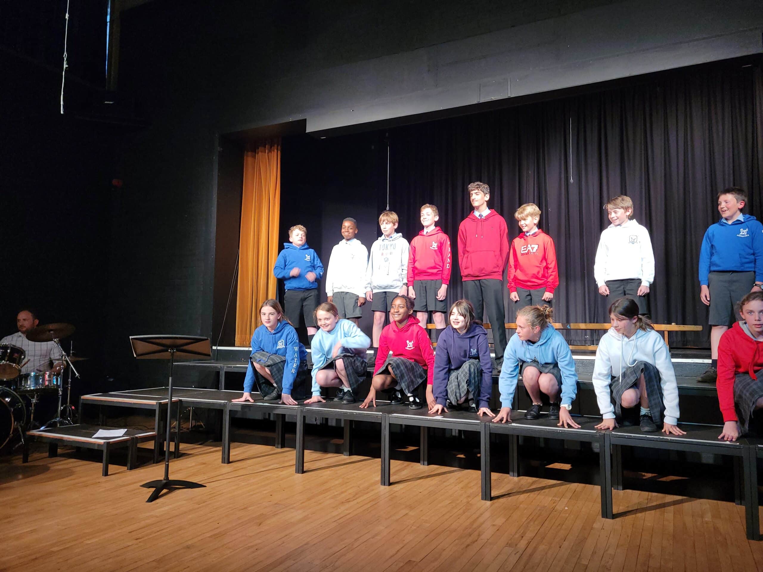 We were so delighted that the traditional Holmwood Songfest was back after a 2 year break due to Covid. There was so much excitement during the rehearsals and the competition Element edge sharpened everyone’s concentration. We were thrilled to be able to welcome so many parents into a packed Jubilee Hall for what turned out to be an extremely fun packed evening. Each element was given just an hour and a half to rehearse their previously unknown song, which were: